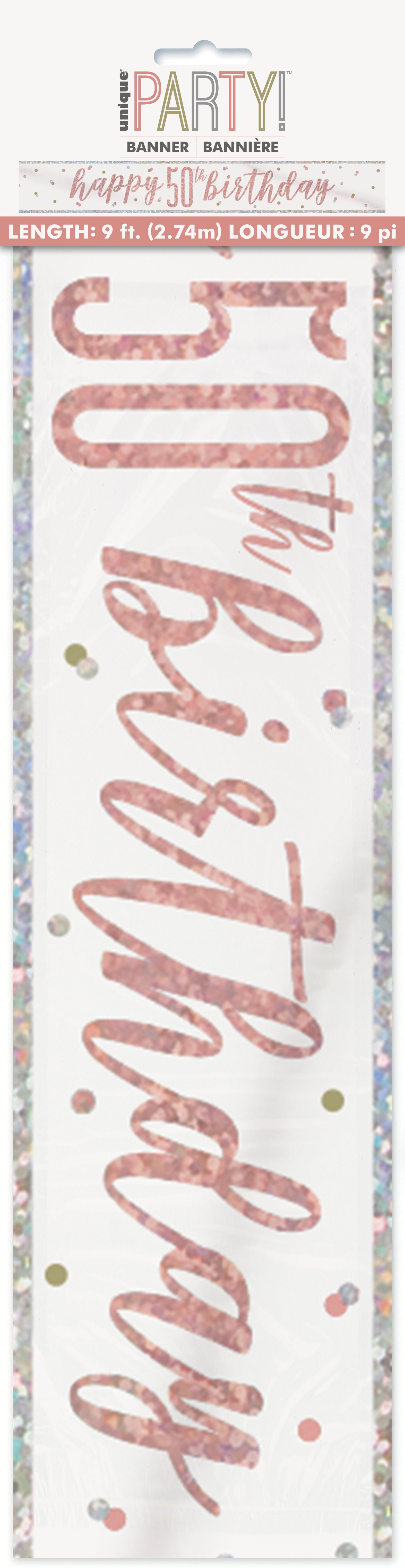 1 9ft Glitz Rose Gold Foil Banner Happy 50th Birthday"