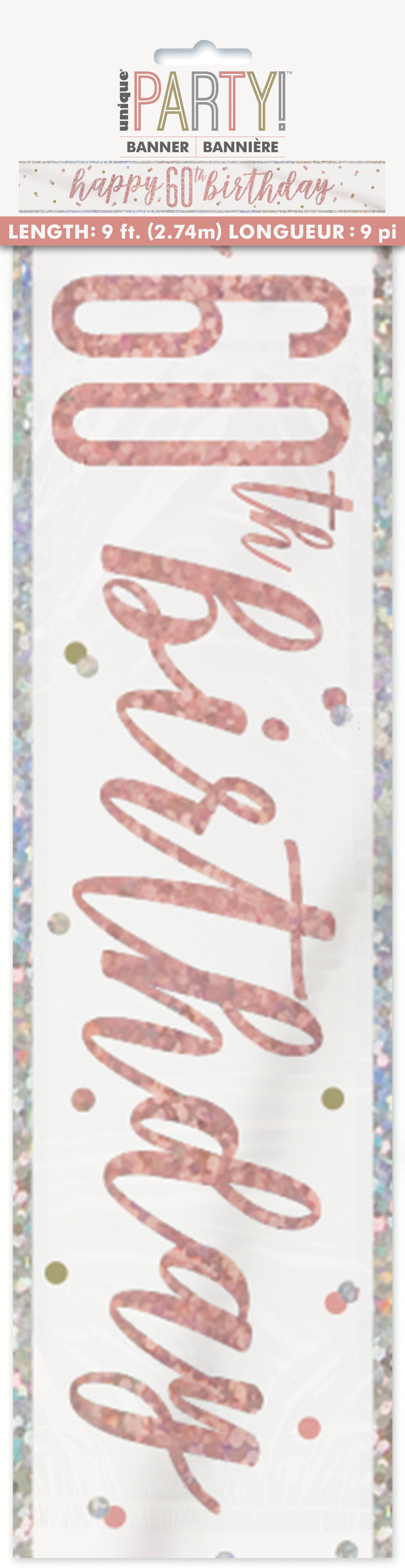 1 9ft Glitz Rose Gold Foil Banner Happy 60th Birthday"