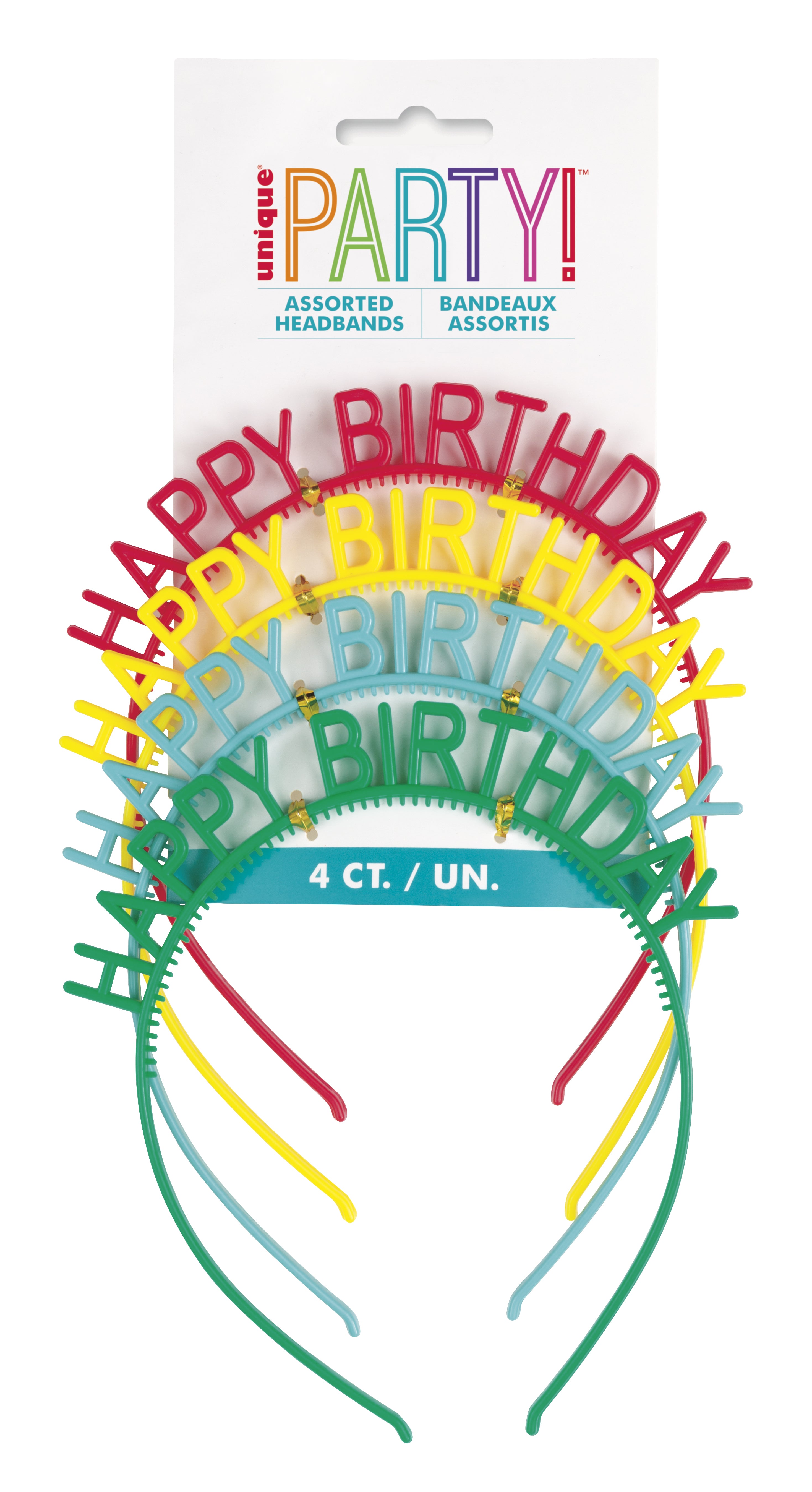 Assorted Colors Cheerful Happy Birthday Headbands 4ct