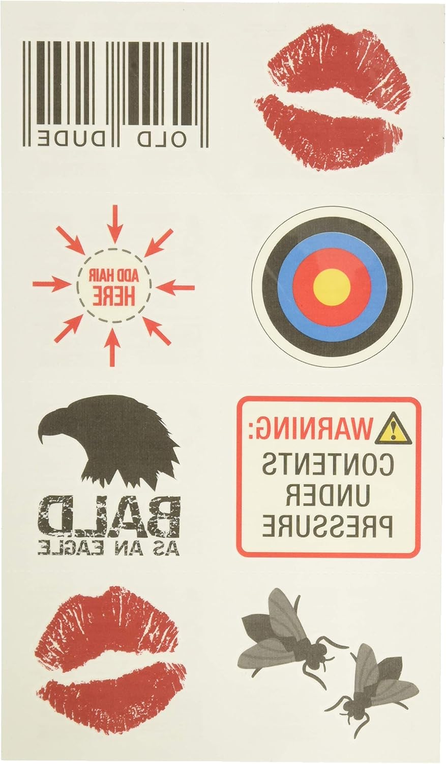 Whether you're going for laughs or a full character transformation, these temporary bald head tattoos will take your look to the next level. Great as a funny gift for bald friends or to complete your party costume!