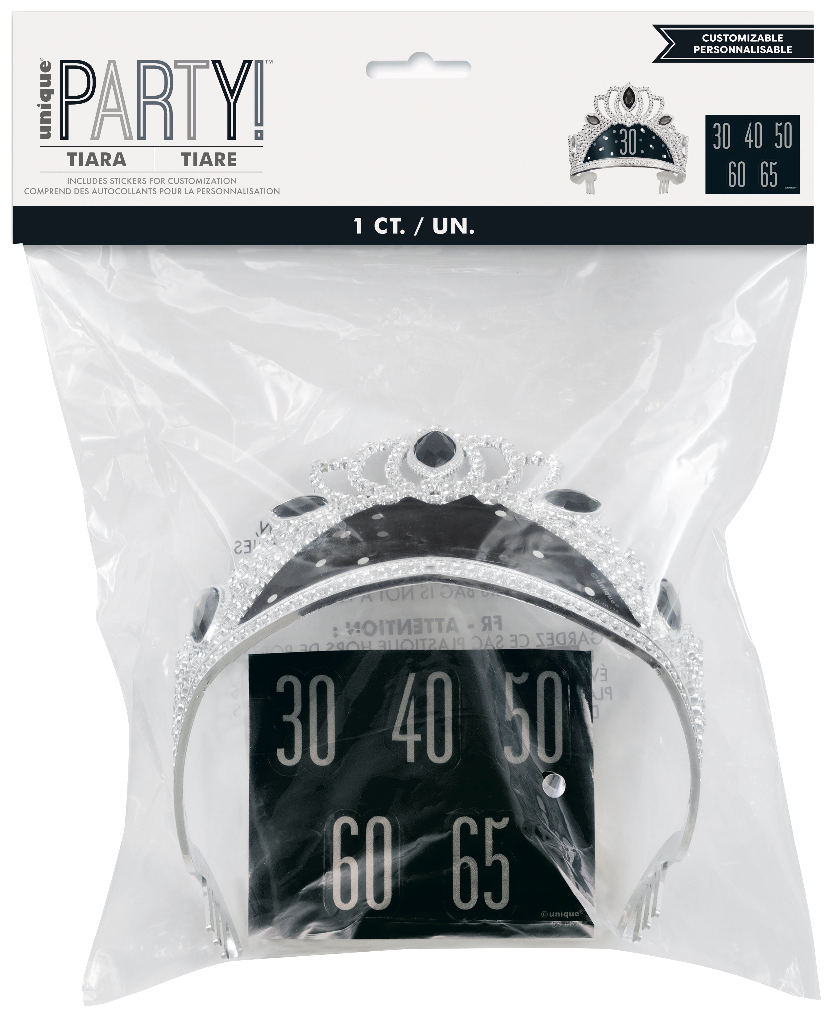 Birthday Black Glitz Plastic Tiara with Number Stickers