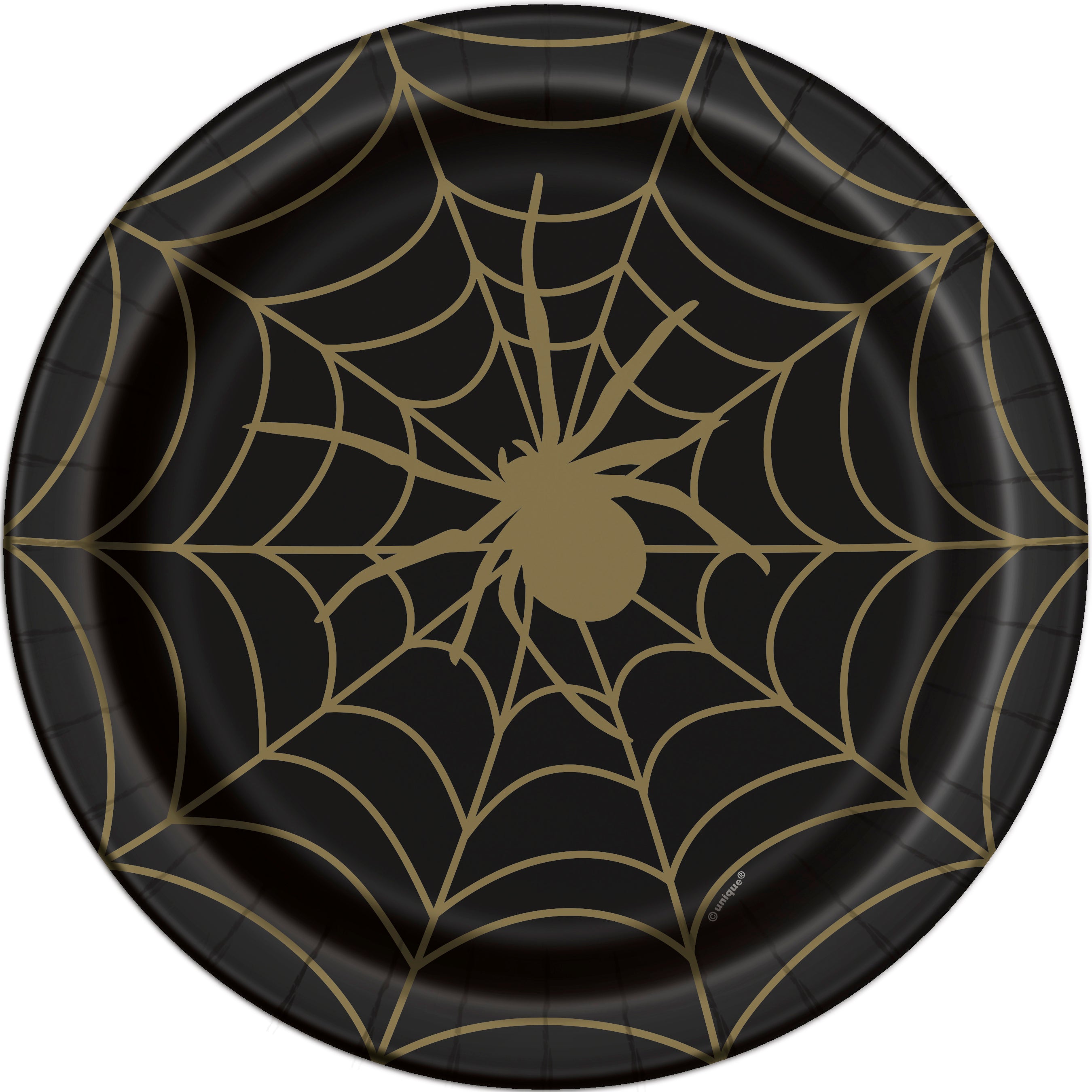Black & Gold Spider Web Round 9” Dinner Plates 8ct