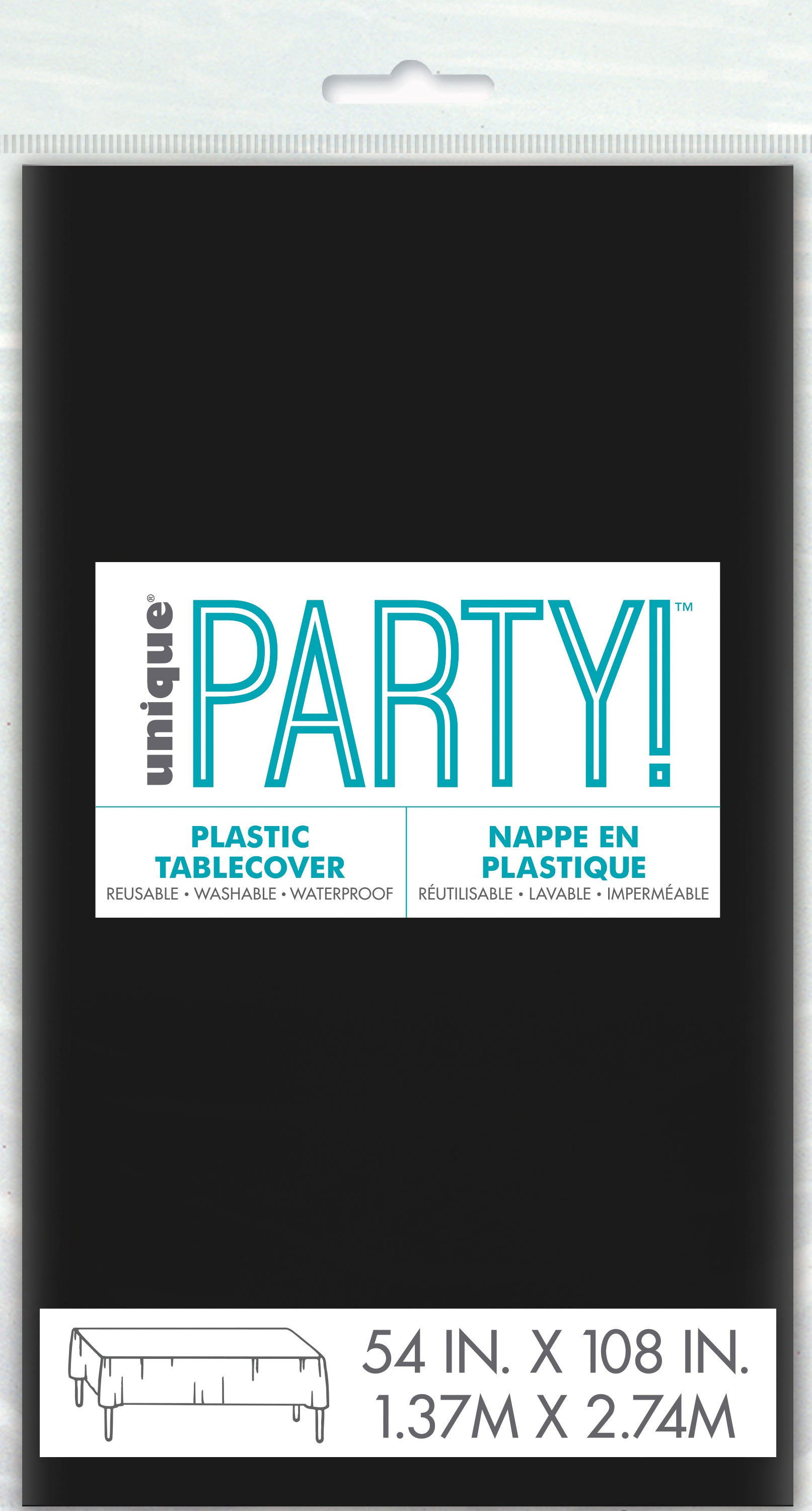 Black Solid Rectangular Plastic Table Cover 54 x 108" - Short Fold"