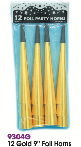 Pack of 12 gold foil party horns