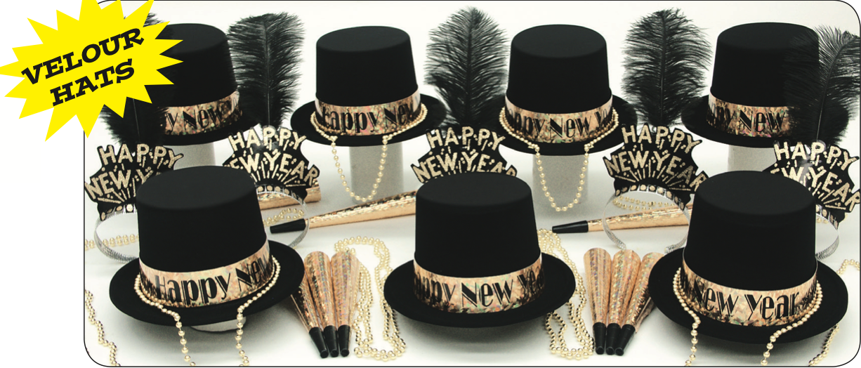This bulk New Year’s Eve party kit saves time and money while creating a coordinated, festive look for your entire crowd. Simply open the box, hand out the accessories, and let the celebration begin.