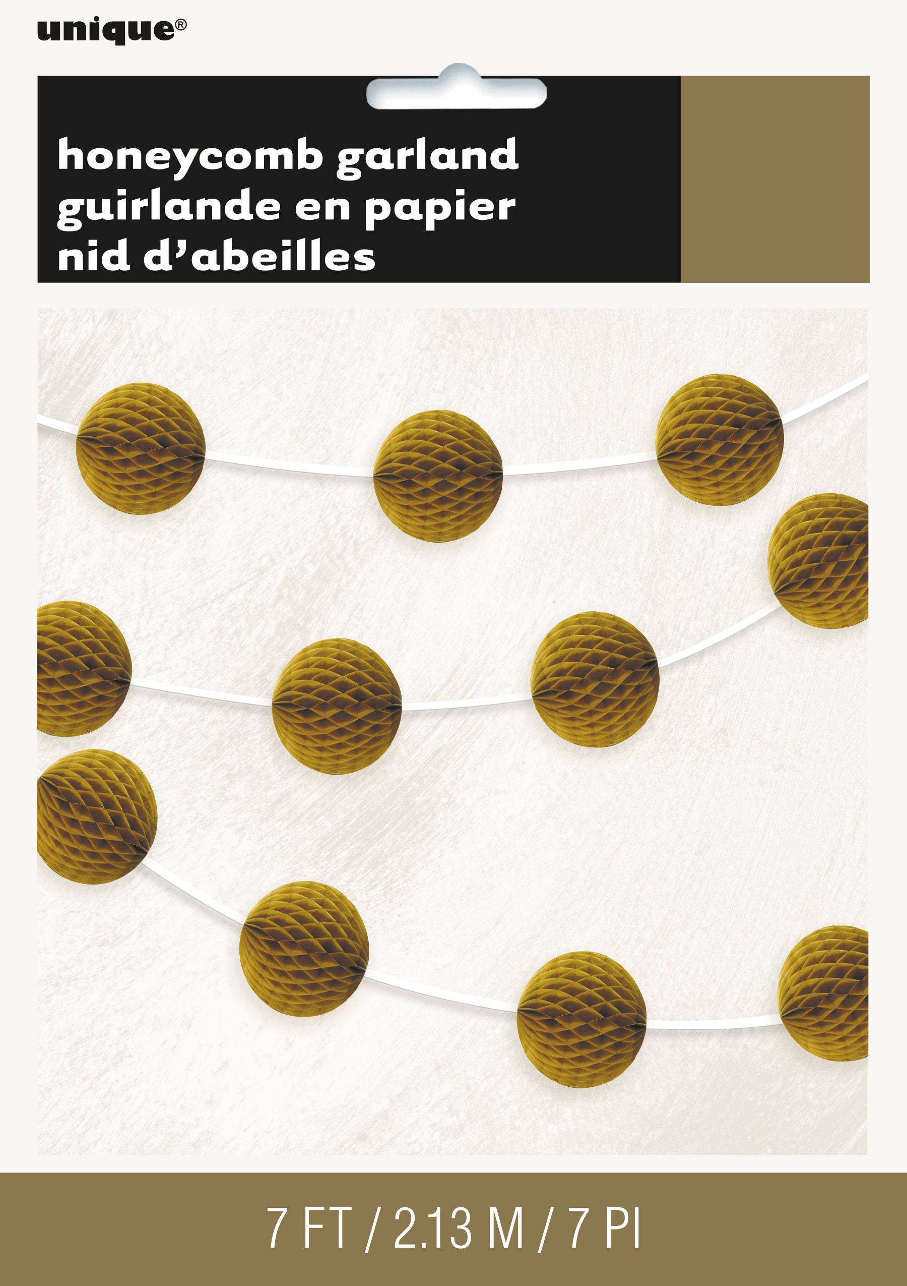 Gold Honeycomb Ball Garland 7 ft
