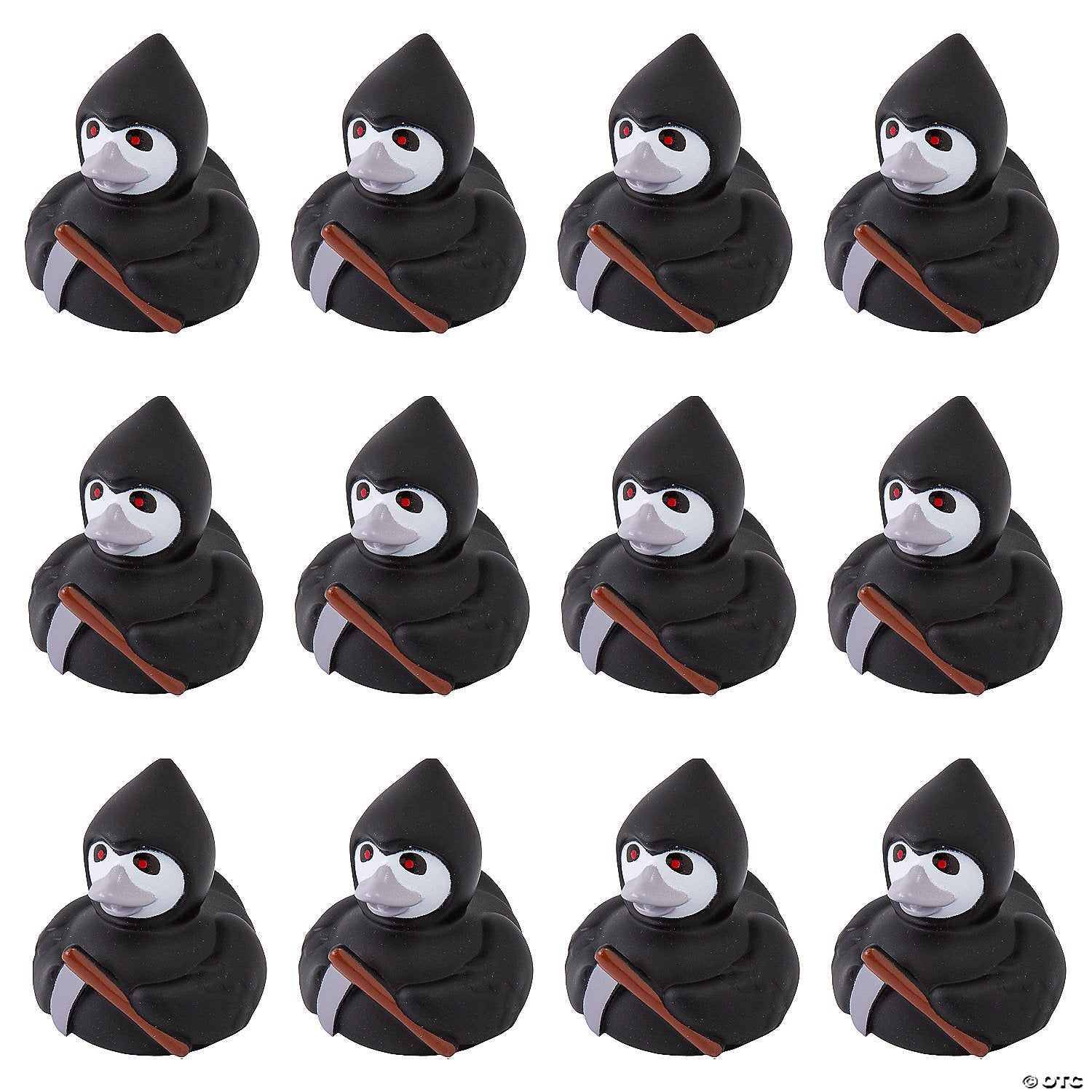 Halloween Reaper Rubber Ducks in Black Cloak Material: Vinyl. Size: 2 1/4” Duckies do not float upright.