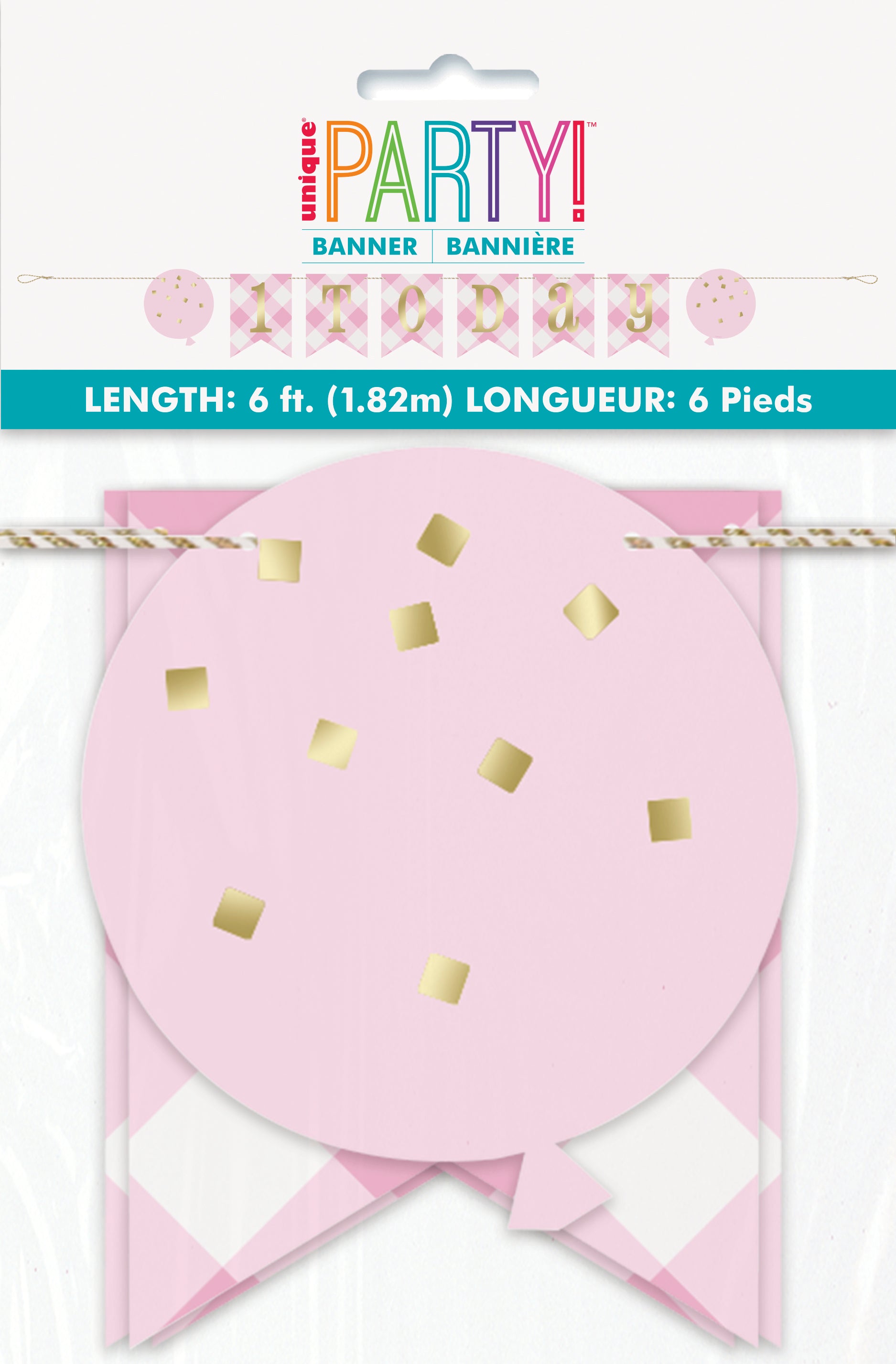 Celebrate your little girl’s milestone with this charming Pink Gingham 1st Birthday Banner. Measuring 6 feet long, this garland features a classic pink gingham pattern and a bold “1” design, making it the perfect decoration for a first birthday party.
