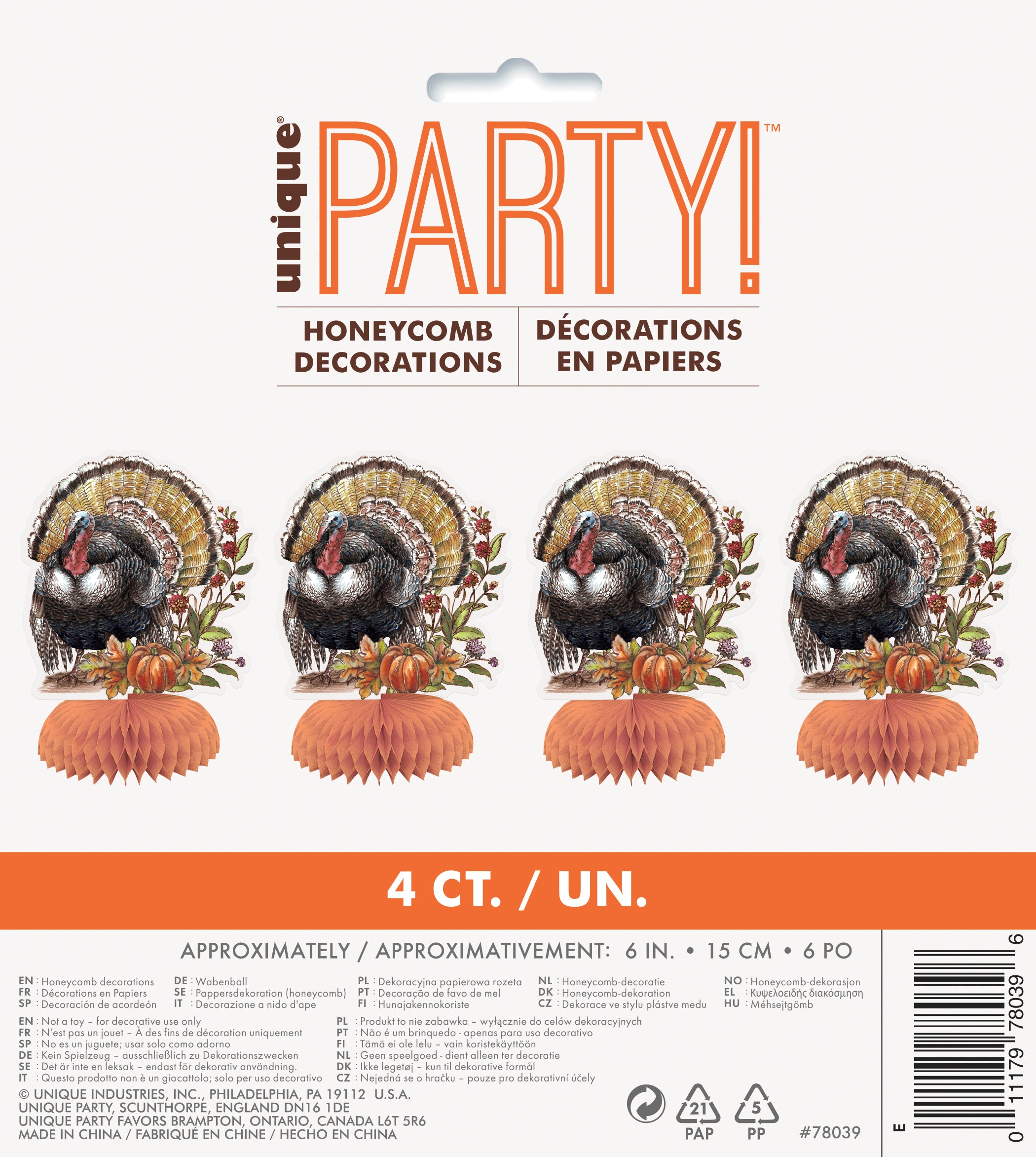 Order your Plaid Turkey 6” Mini Honeycomb Decorations – 4ct today and create a festive fall atmosphere your guests will love!