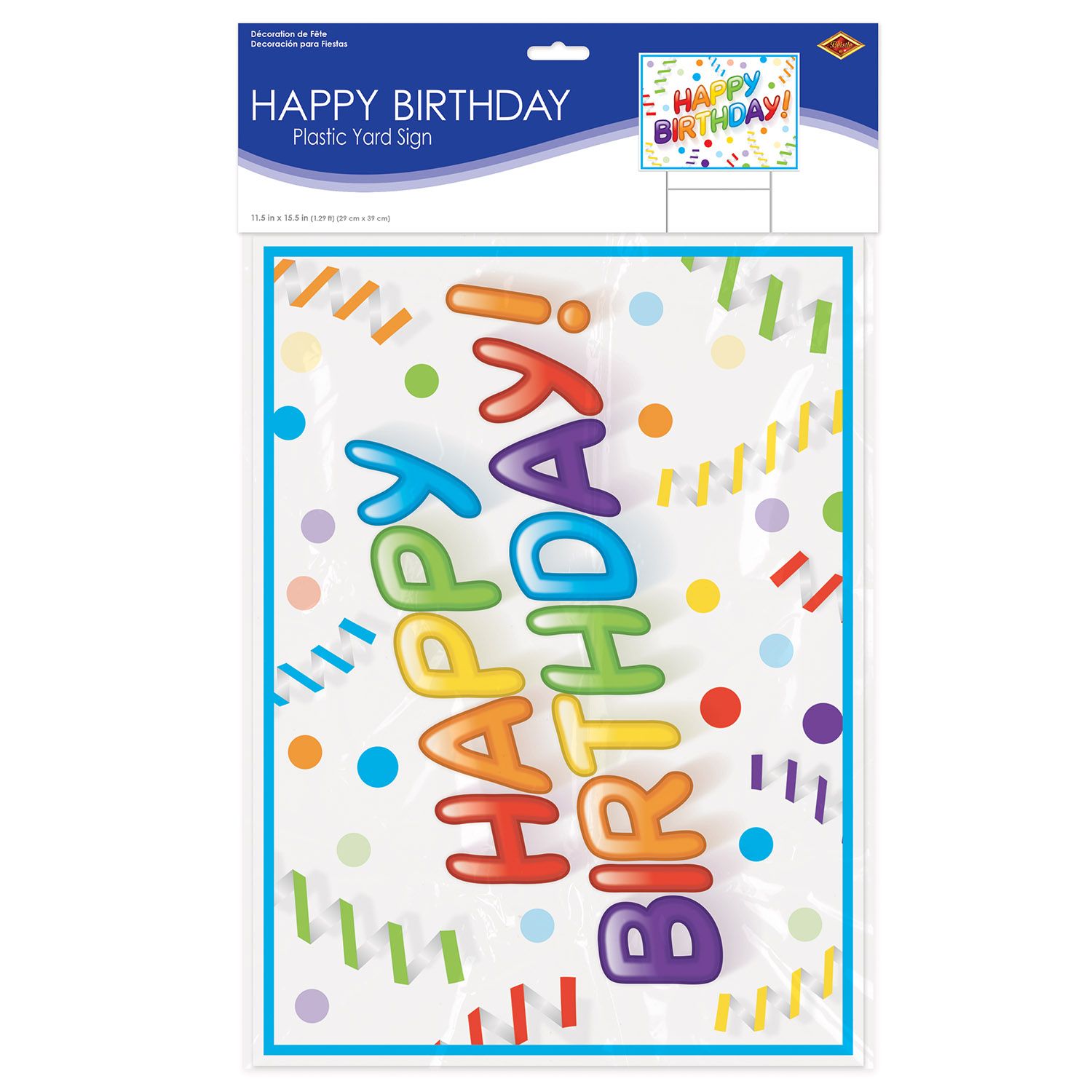 Celebrate a special day with bold, outdoor flair using this Happy Birthday Yard Sign! Designed to stand out, this vibrant 11.5” x 15.5” plastic sign features colorful lettering and festive graphics that make birthday celebrations even more exciting for kids, teens, or adults.