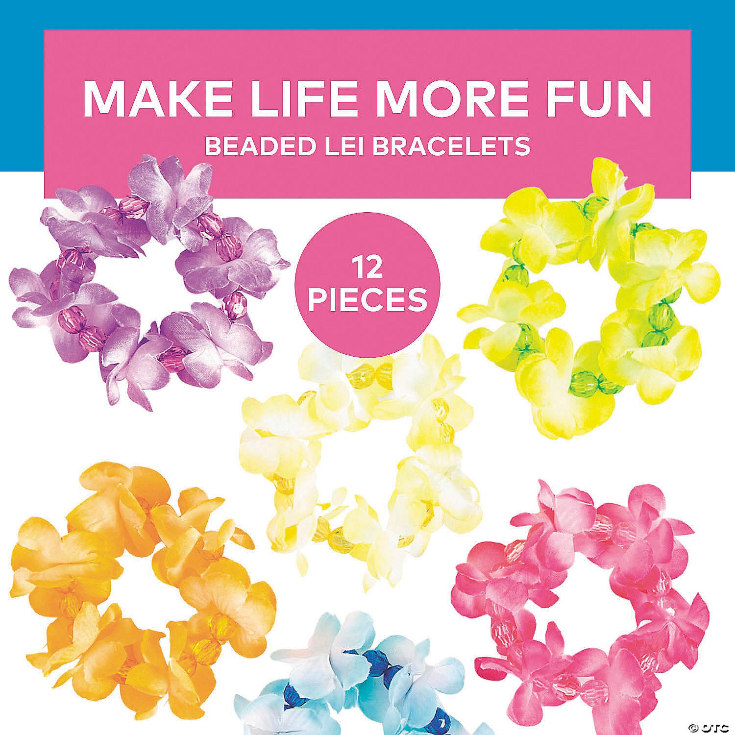 Polyester Lei Bracelet with Beads – 3”, Assorted Colors 🌺✨